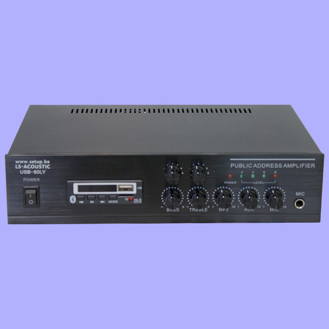 Model USB-60LY je kompaktno pojačalo snage 60 W, idealno za manje prostore poput kancelarija, manjih lokala, butika, čekaonica ili kućnih instalacija.