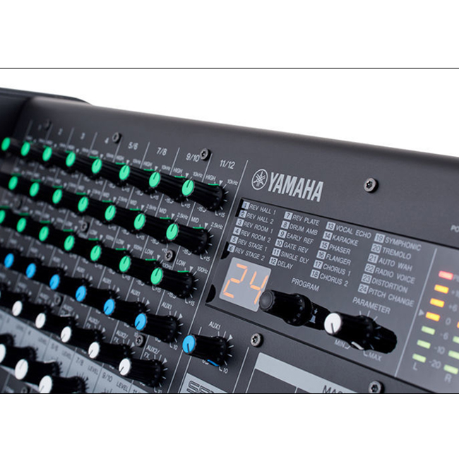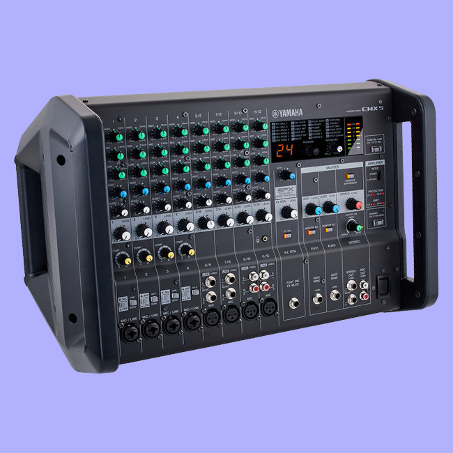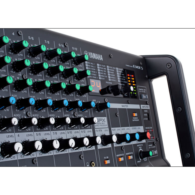 Box-type robust and portable powered mixer featuring high efficiency power amplifier of 630W and mixer with comprehensive effects, 1-Knob Master EQ™ and built-in feedback suppressor.