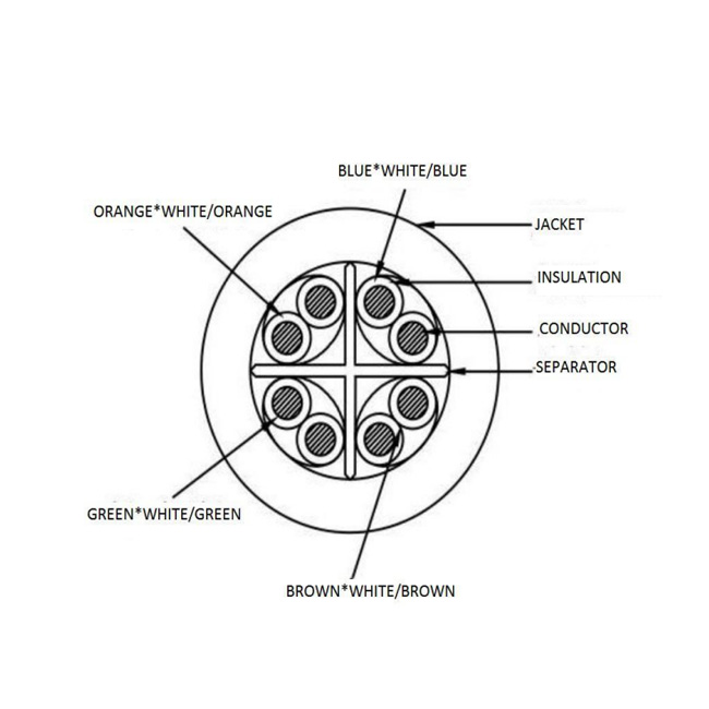 Color: Orange*White/Orange, Green*White /Green, Blue*White/Blue, Brown*White/Brown Diameter 0.98 ± 0.05mm