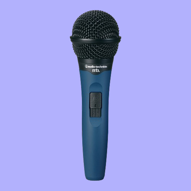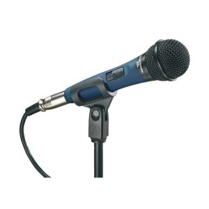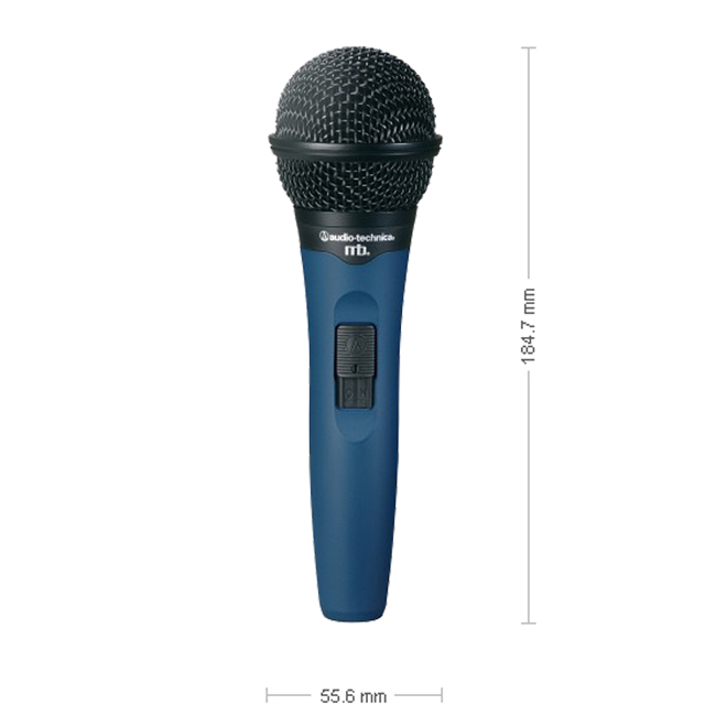 It features Audio-Technica's Hi-Energy® neodymium magnet structure for maximum output and fast transient response, lockable MagnaLock™ switch design for silent on/off operation, and a corrosion-resistant gold-plated XLRM-type connector.
