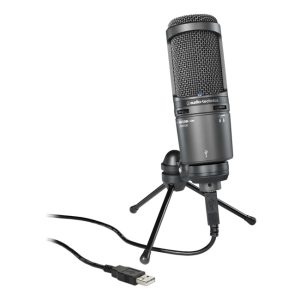 Equipped with a USB output, the AT2020USB+ is designed for digitally capturing music or any acoustic audio source using your favorite recording software. The microphone offers the critically acclaimed, award-winning sound of the AT2020, with studio-quality articulation and intelligibility perfect for singer/songwriters, podcasters, voice-over artists, field recorders, and home studio recorders. The AT2020USB+ features a built-in headphone jack with volume control that allows you to directly monitor your microphone signal with no delay. It also offers mix control that blends microphone and pre-recorded audio. The microphone’s cardioid pickup pattern delivers excellent off-axis rejection, while its A/D converter with a 16-bit, 44.1/48 kHz sampling rate ensures extremely articulate sound reproduction. Audio-Technica’s state-of-the-art design and manufacturing techniques ensure that the microphone complies with the company’s renowned consistency and reliability standards.