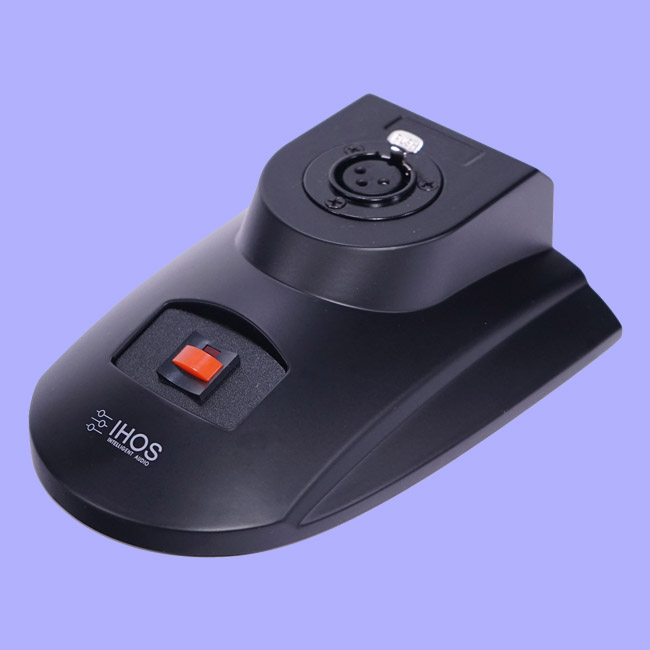 Gooseneck microphone table mount, XLR female connector, red led switch, steel black heavy housing.