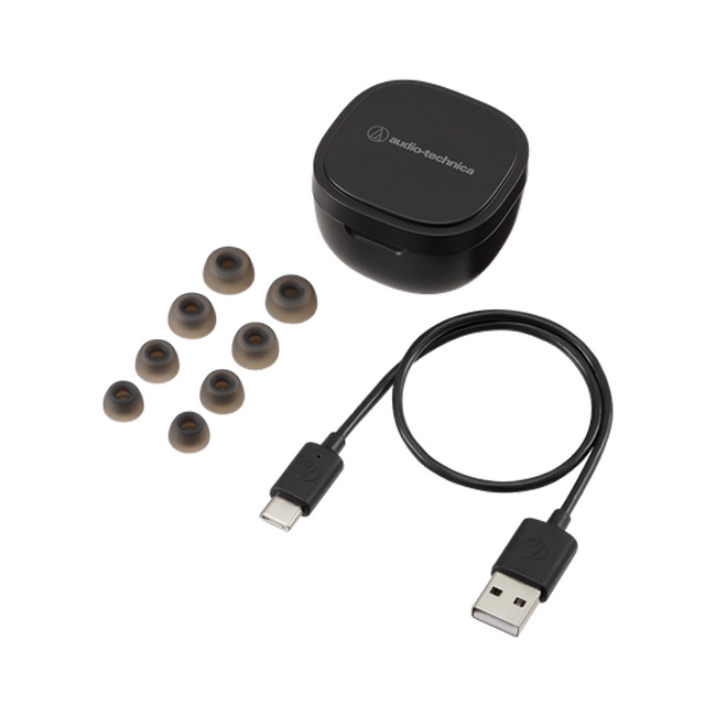 Included Accessories: The ATH-SQ1TW comes with a charging case, charging cable, and four pairs of eartips for earbuds.