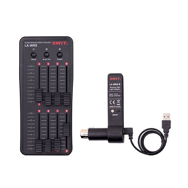 LA-WR8 is a portable wireless DMX controller for field light kit application, compatible with all standard DMX512 protocol lights, to get rid of complex DMX cable work and large DMX console, and makes the field light kit control easier and quicker.