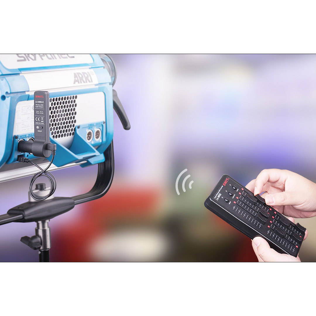 * The “SkyPanel” light indicated in this picture is a product of ARRI Group, and is one of the lights that this wireless DMX controller is compatible with.