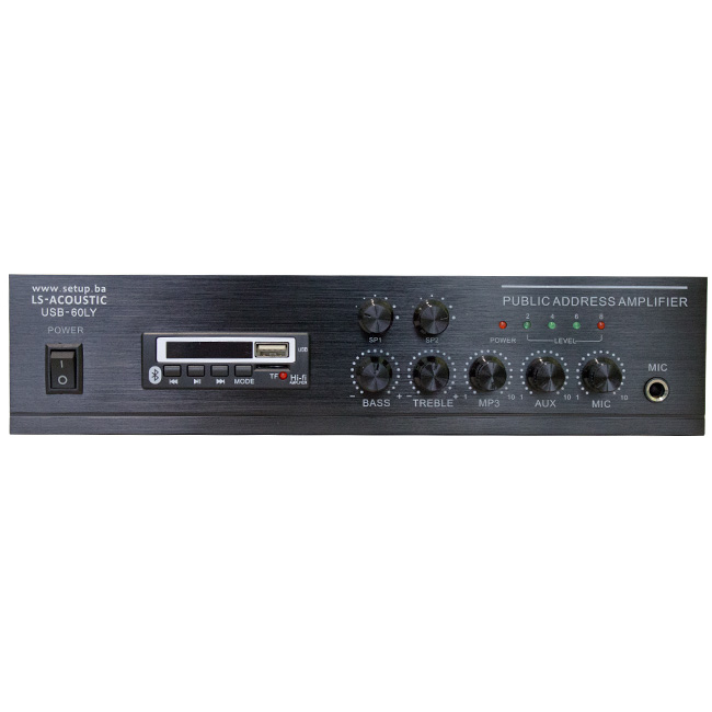Model USB-60LY je kompaktno pojačalo snage 60 W, idealno za manje prostore poput kancelarija, manjih lokala, butika, čekaonica ili kućnih instalacija.