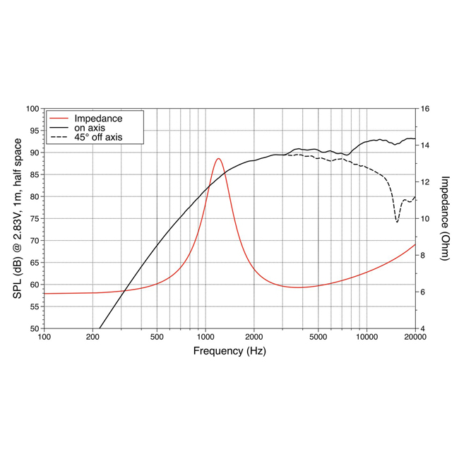 15 W AES, 8 ohms, 92 dB, 1250-30000 Hz