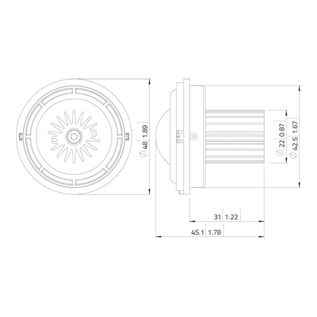 Speakers: Calottes highs (1.35") appox 3,5cm with Neodymiummagnet